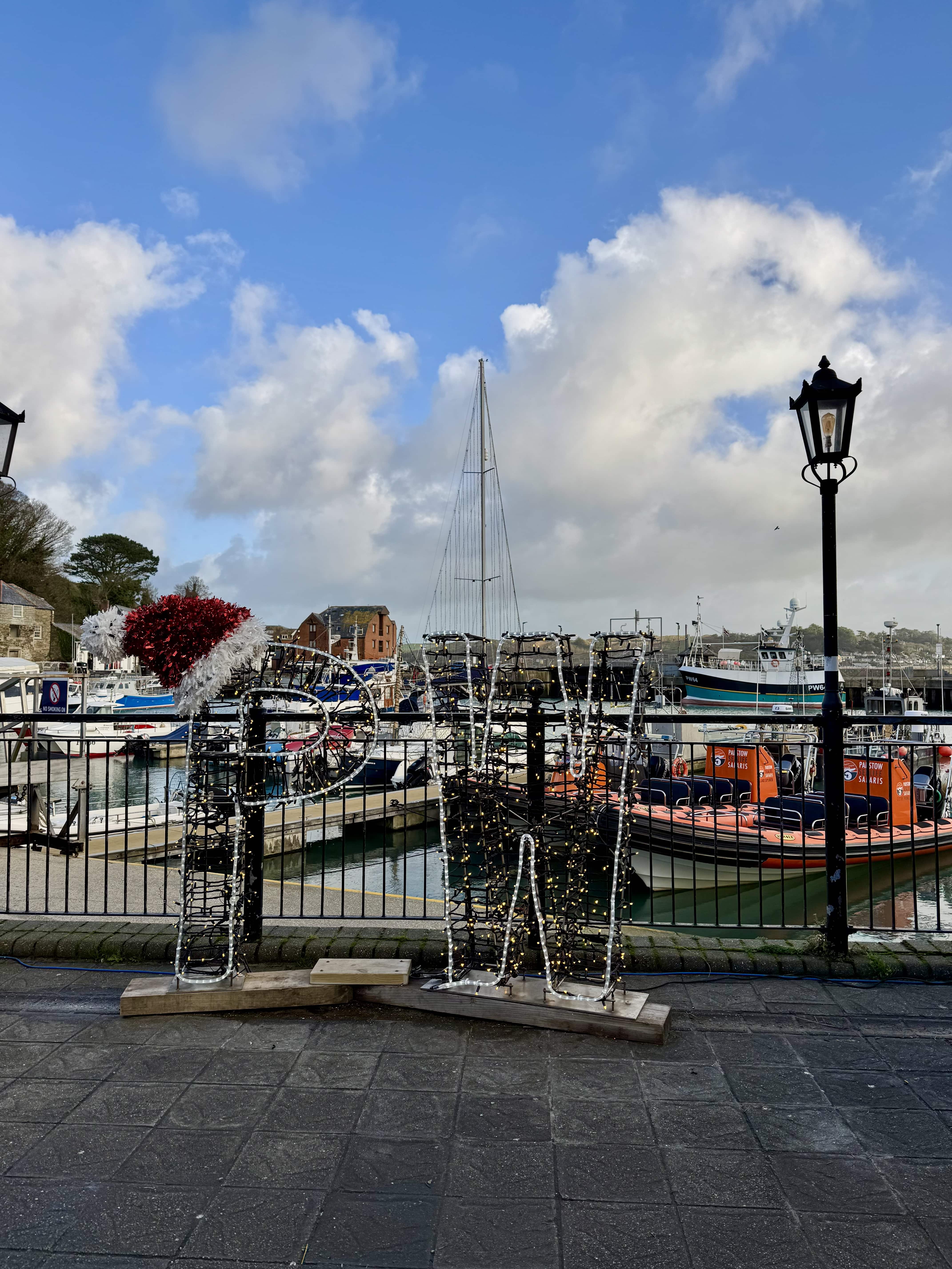 Refuelled, we strolled around the harbour, taking in the Christmas lights and decoration dotted in and around the water. Benches along the edge provide the perfect spot to stop and watch the boats come and go and bob on the water.
