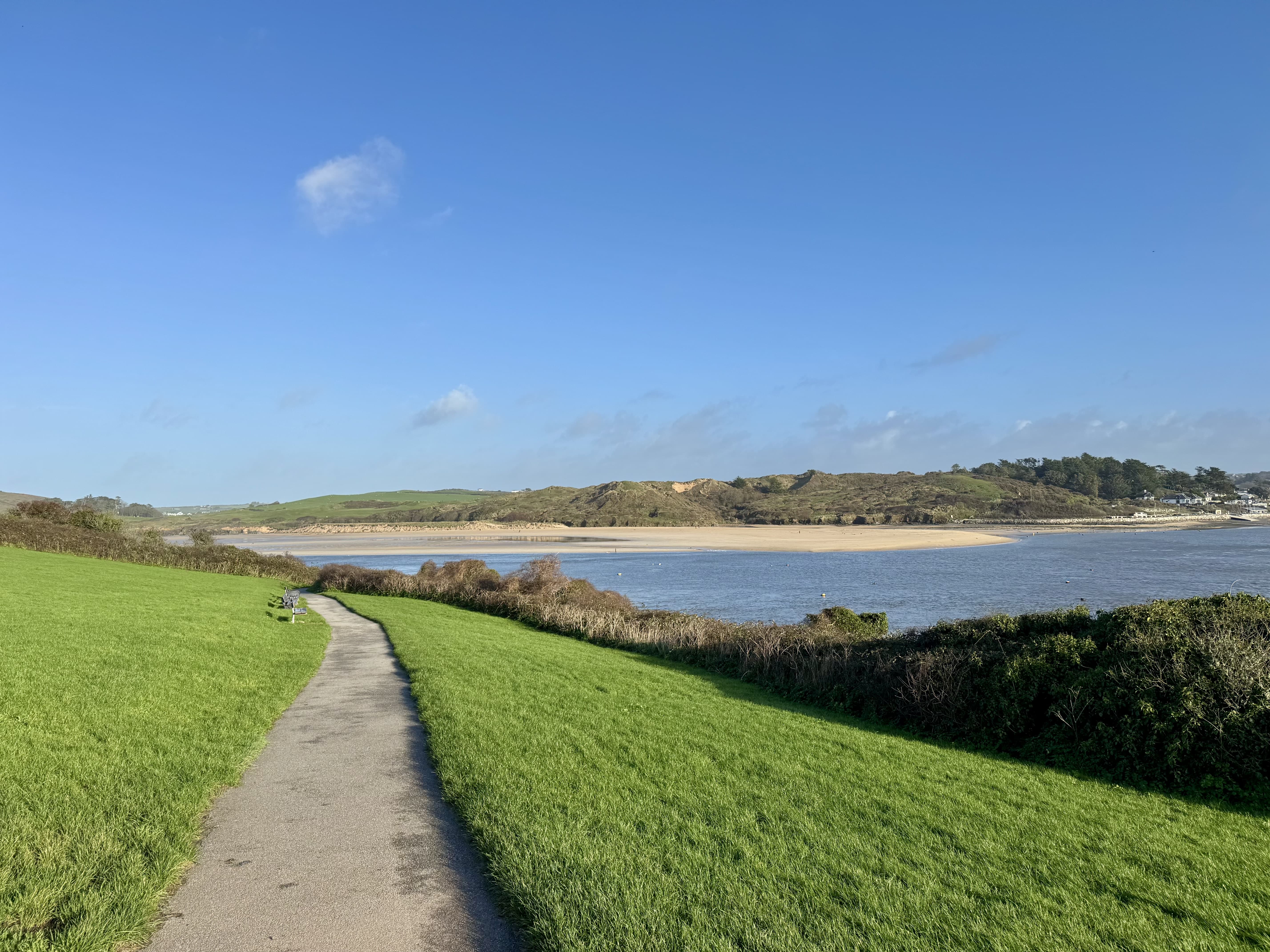 We then joined the path that takes you up behind Greens, along the grass that rises above the estuary and up to the war memorial at the top. Here, you can enjoy the views across the water towards Rock and Daymer Bay.